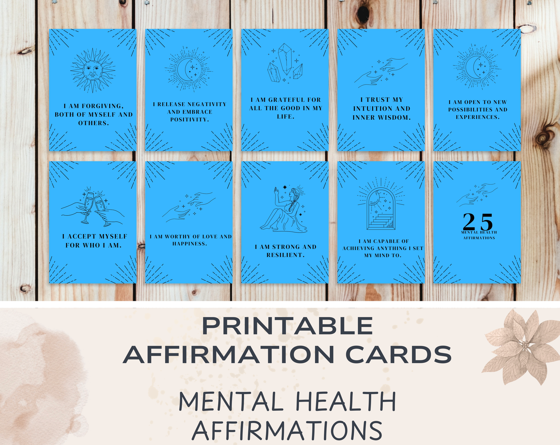 25 Mental Health Affirmation Cards are a beautifully designed, printable set created to support daily well-being. This digital product arrives as an instant download, so you can start your self‑care routine in minutes.
