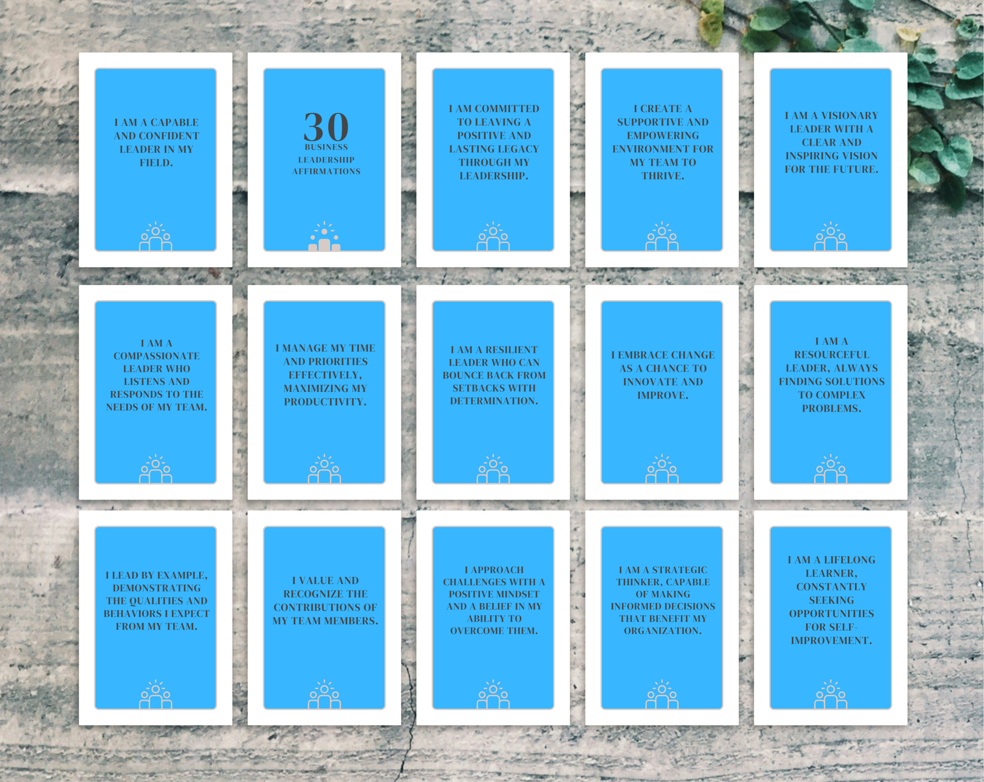 - 30 business leadership affirmation cards (digital download).