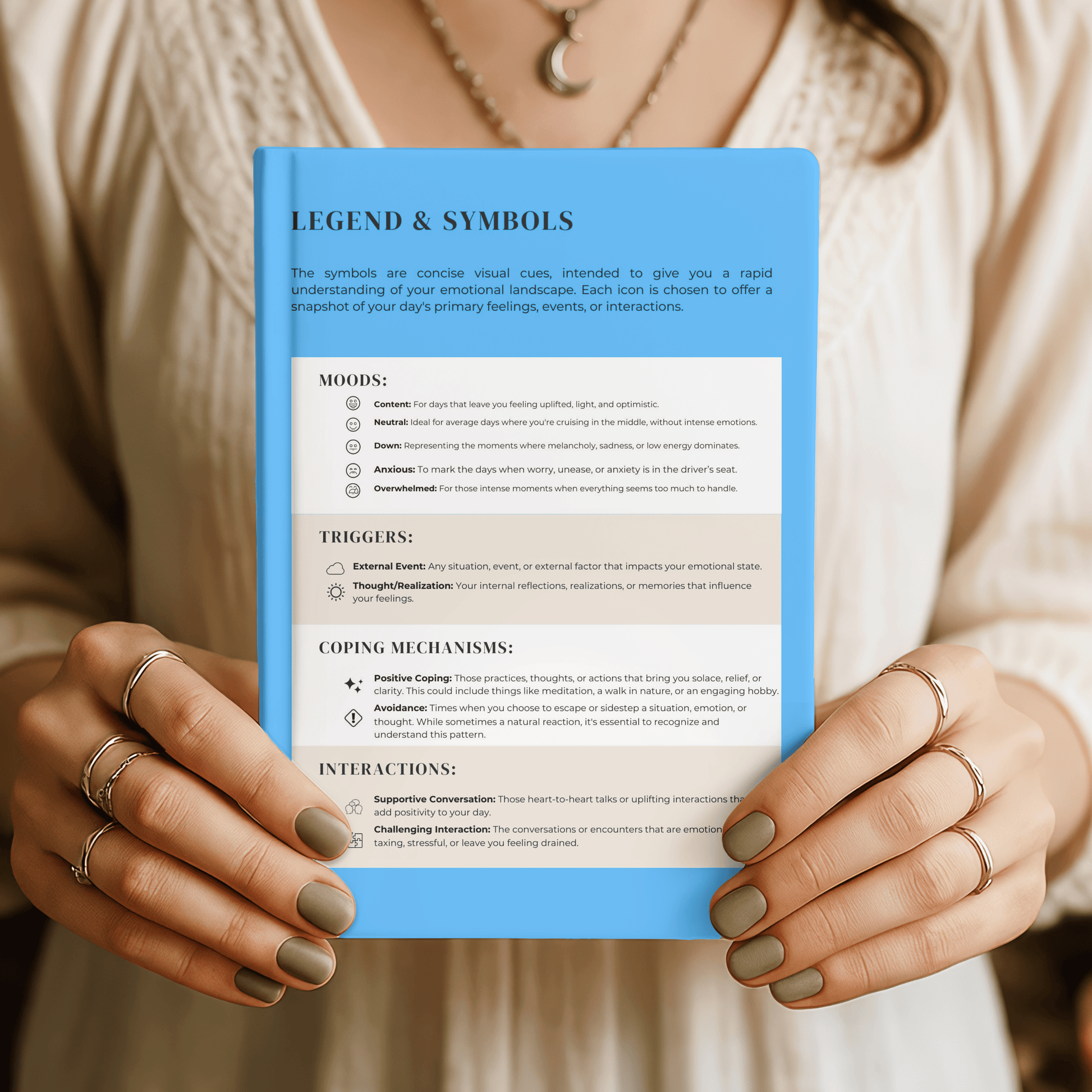 - Legend & Symbols — A simple visual language to log feelings quickly, helping you track mood and triggers at a glance.