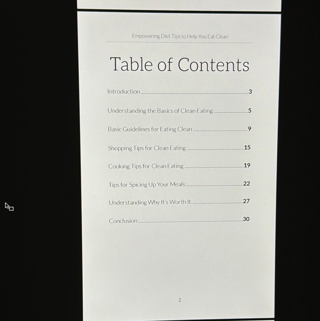 Empowering Diet Tips To Help You Eat Clean Ebook is a one-of-a-kind product that will revolutionize the way you approach your diet. This comprehensive ebook is filled with expert advice and practical tips to help you eat clean and achieve your health goals. With over 90 pages of valuable information, this ebook covers everything from meal planning and grocery shopping to mindful eating and portion control.