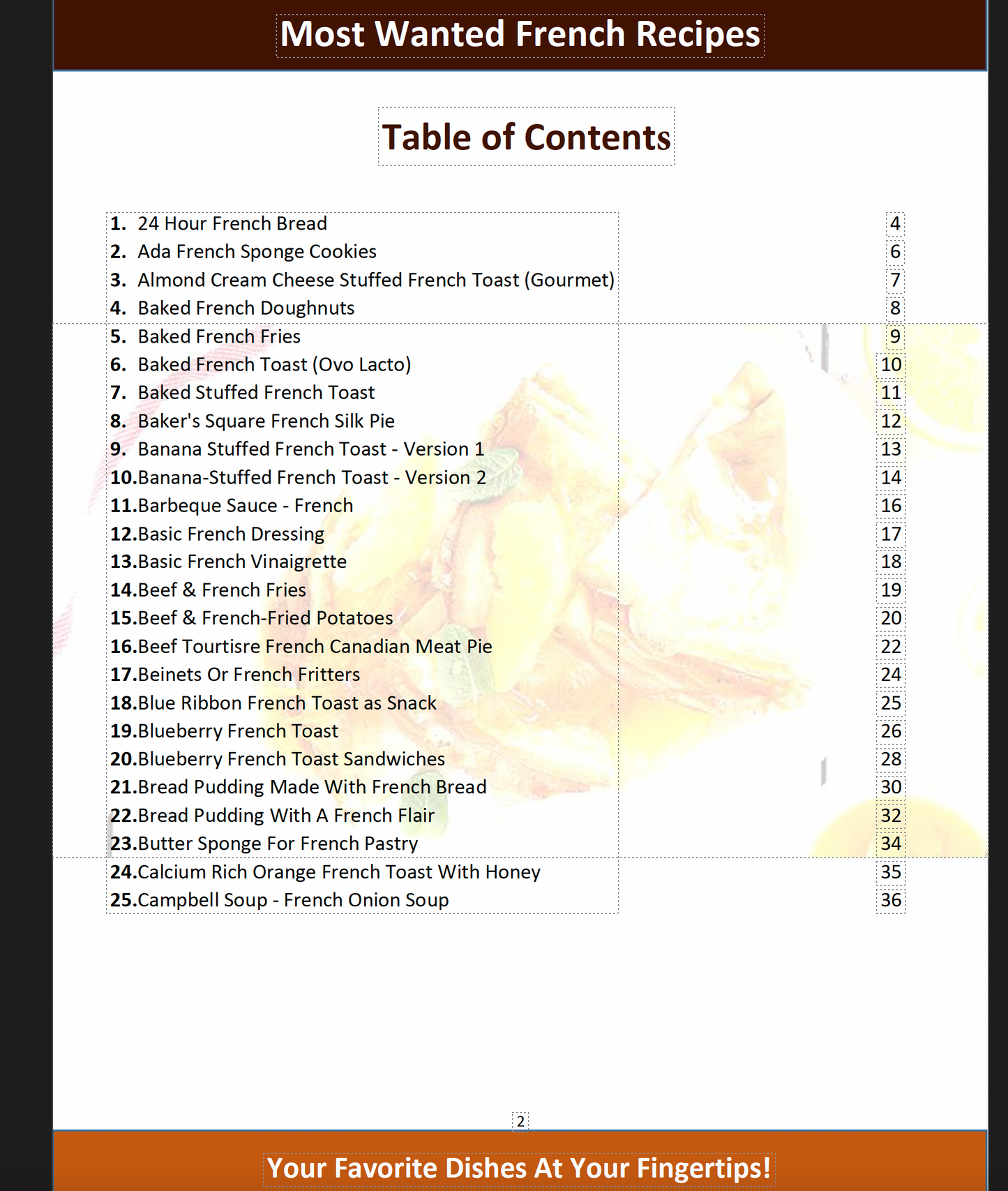 Each recipe is crafted with the finest ingredients and step-by-step instructions, making it easy for even the novice cook to create authentic French dishes that will impress any dinner party. Elevate your cooking game and add a touch of French elegance to your meals with our Most Wanted French Recipes.