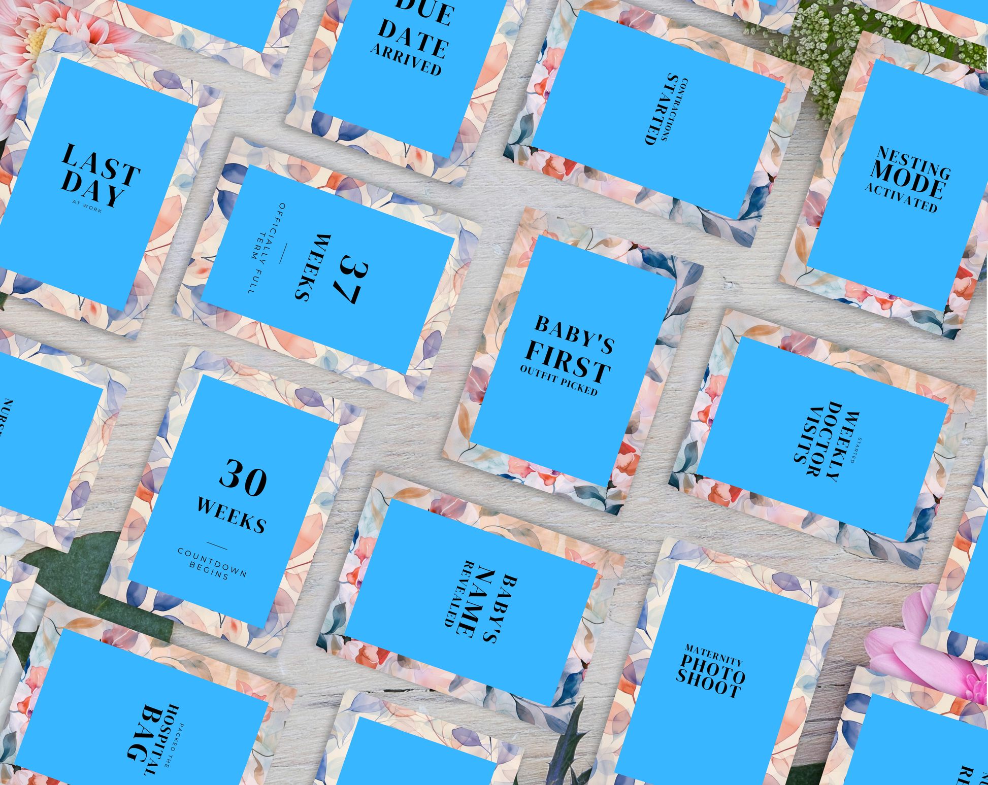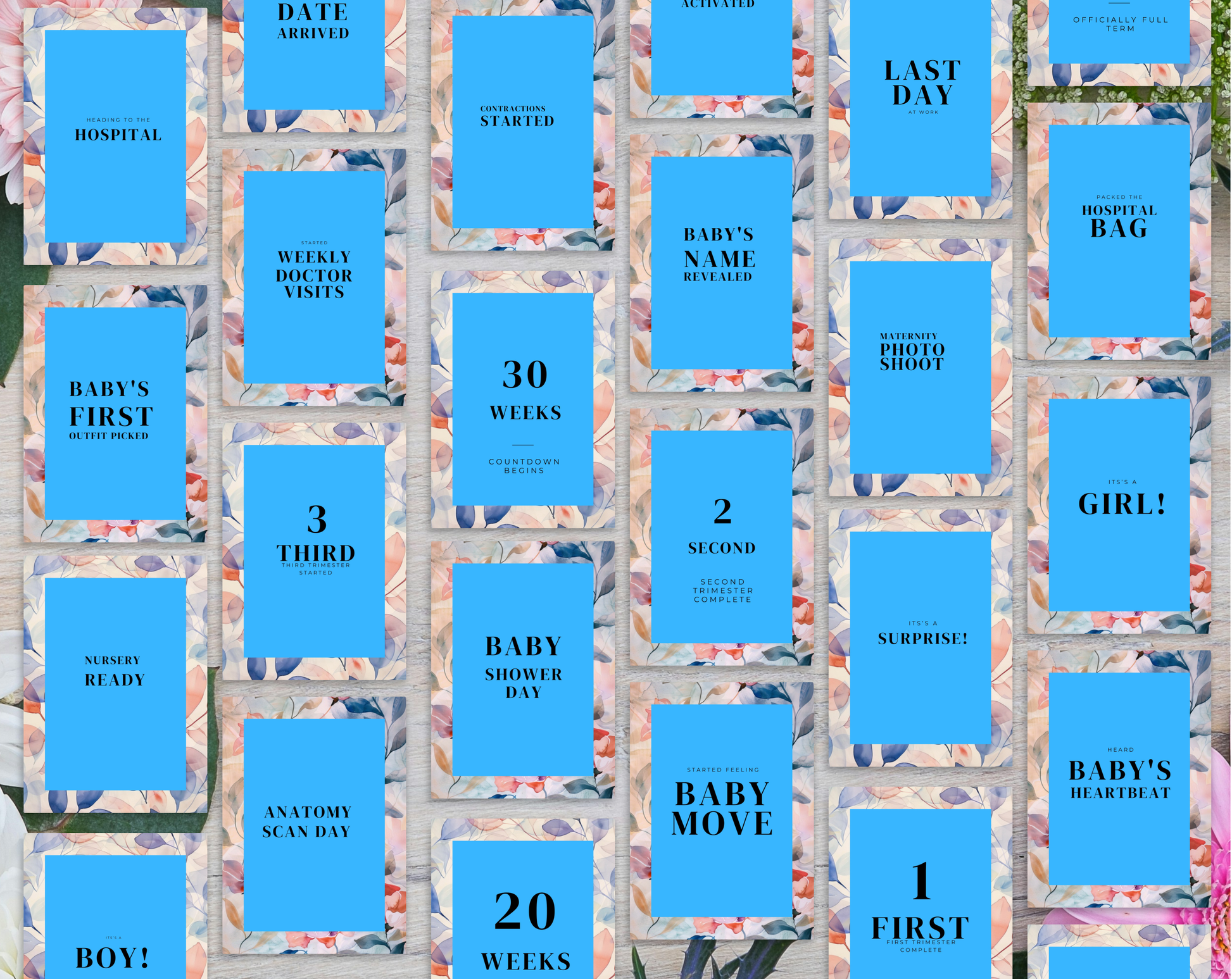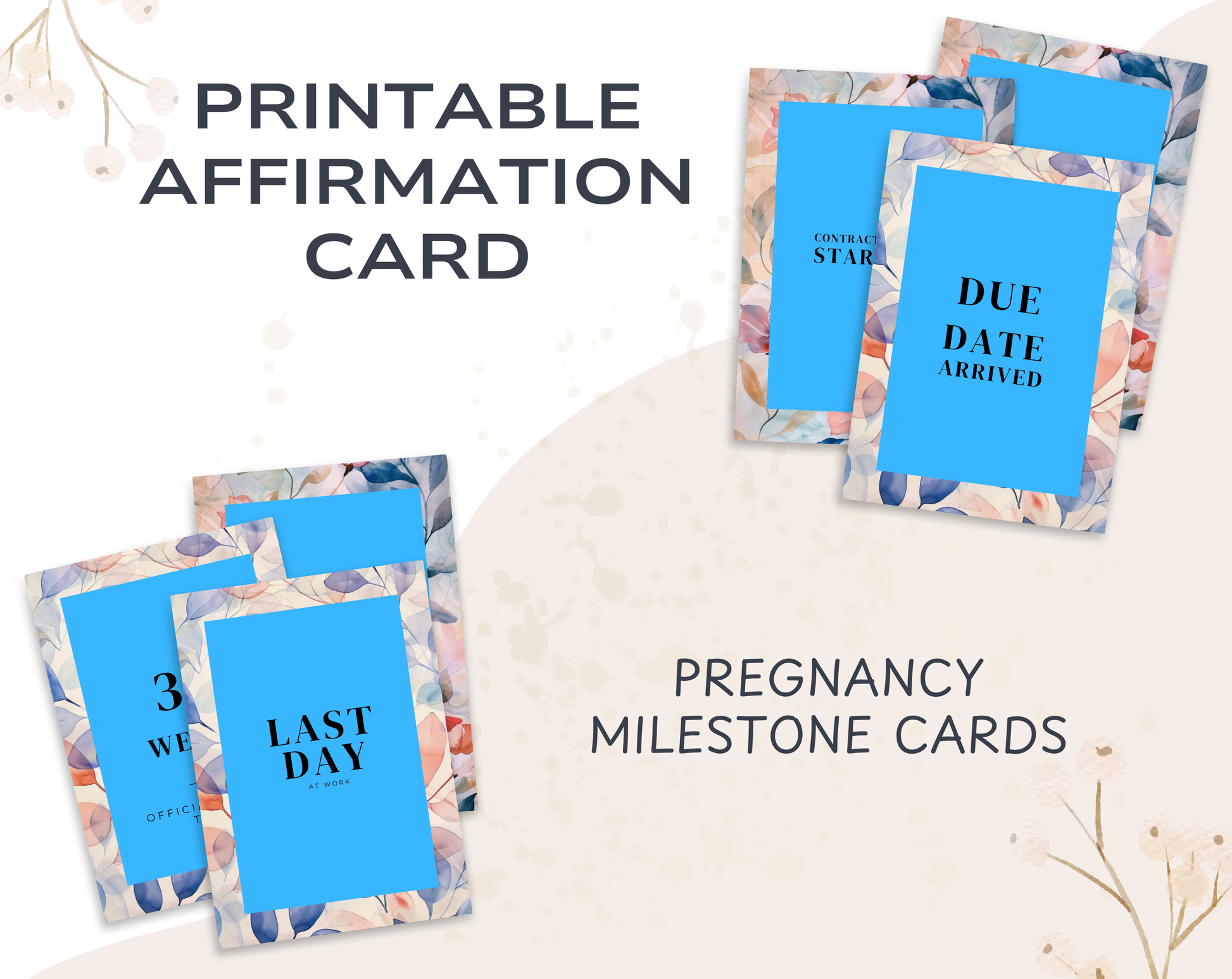 40 Pregnancy Milestone Cards — a beautifully designed, printable set that helps you celebrate and document every precious moment of your pregnancy. This digital download includes 40 milestone cards sized for standard 5x7 inch prints, making it easy to frame, photograph, or add to memory keepsakes.