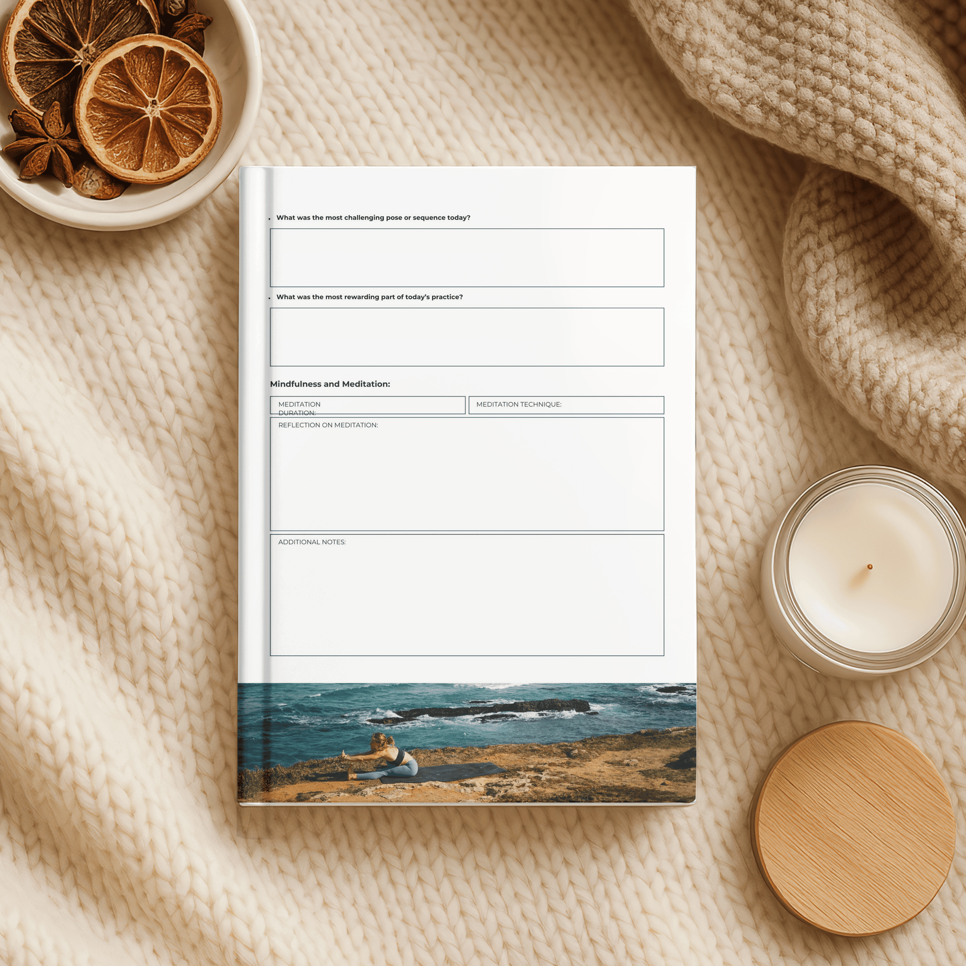 Designed to guide you through daily practice, weekly reflections, and monthly reviews, it helps you build a sustainable yoga routine, track progress, and deepen mindfulness through meditation prompts.