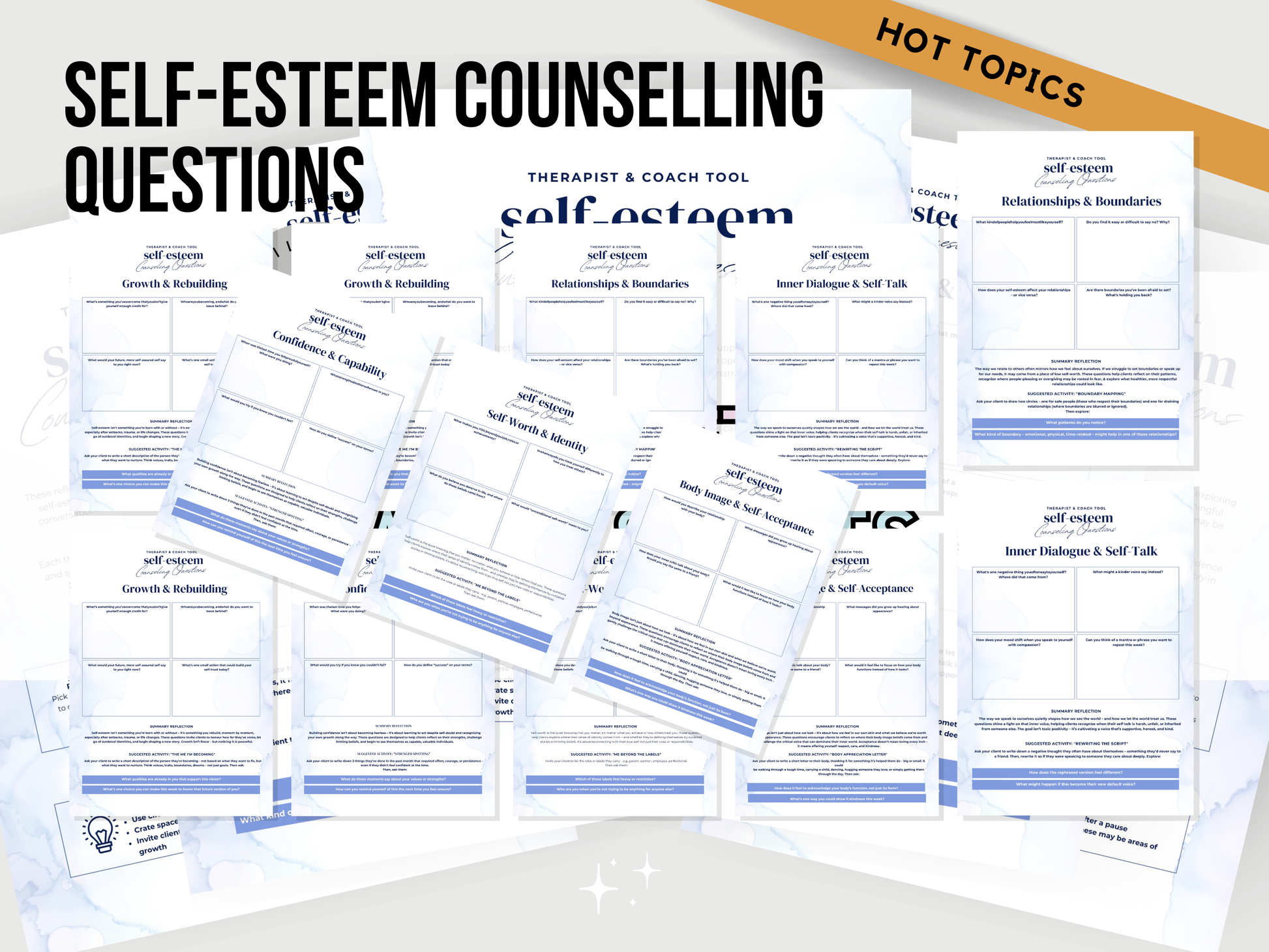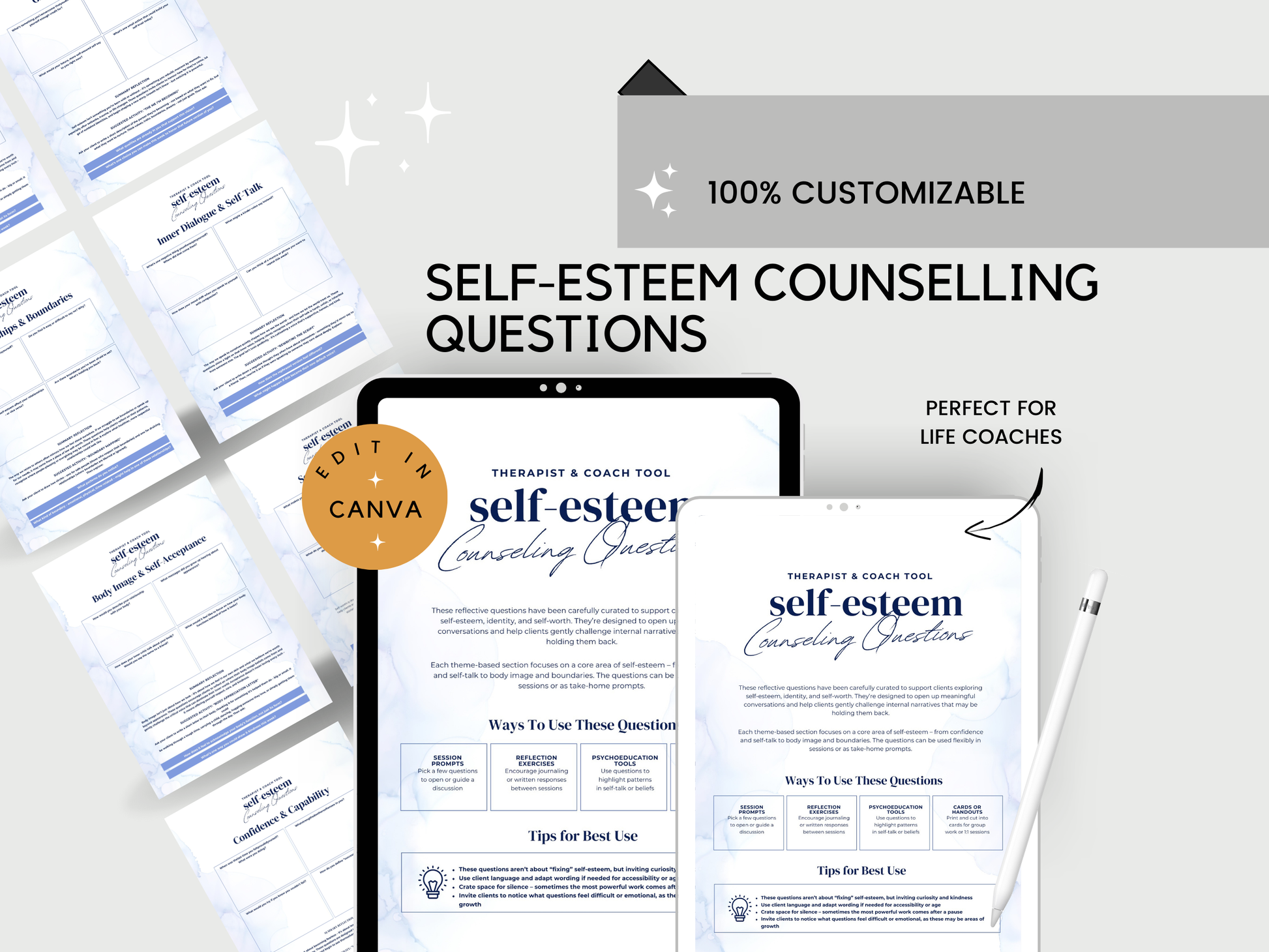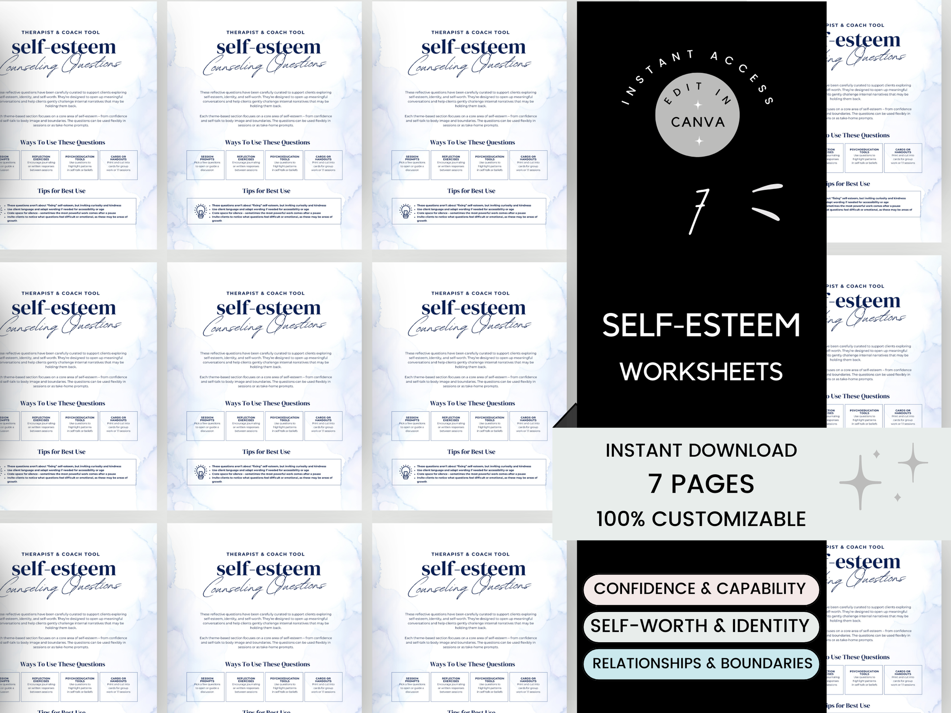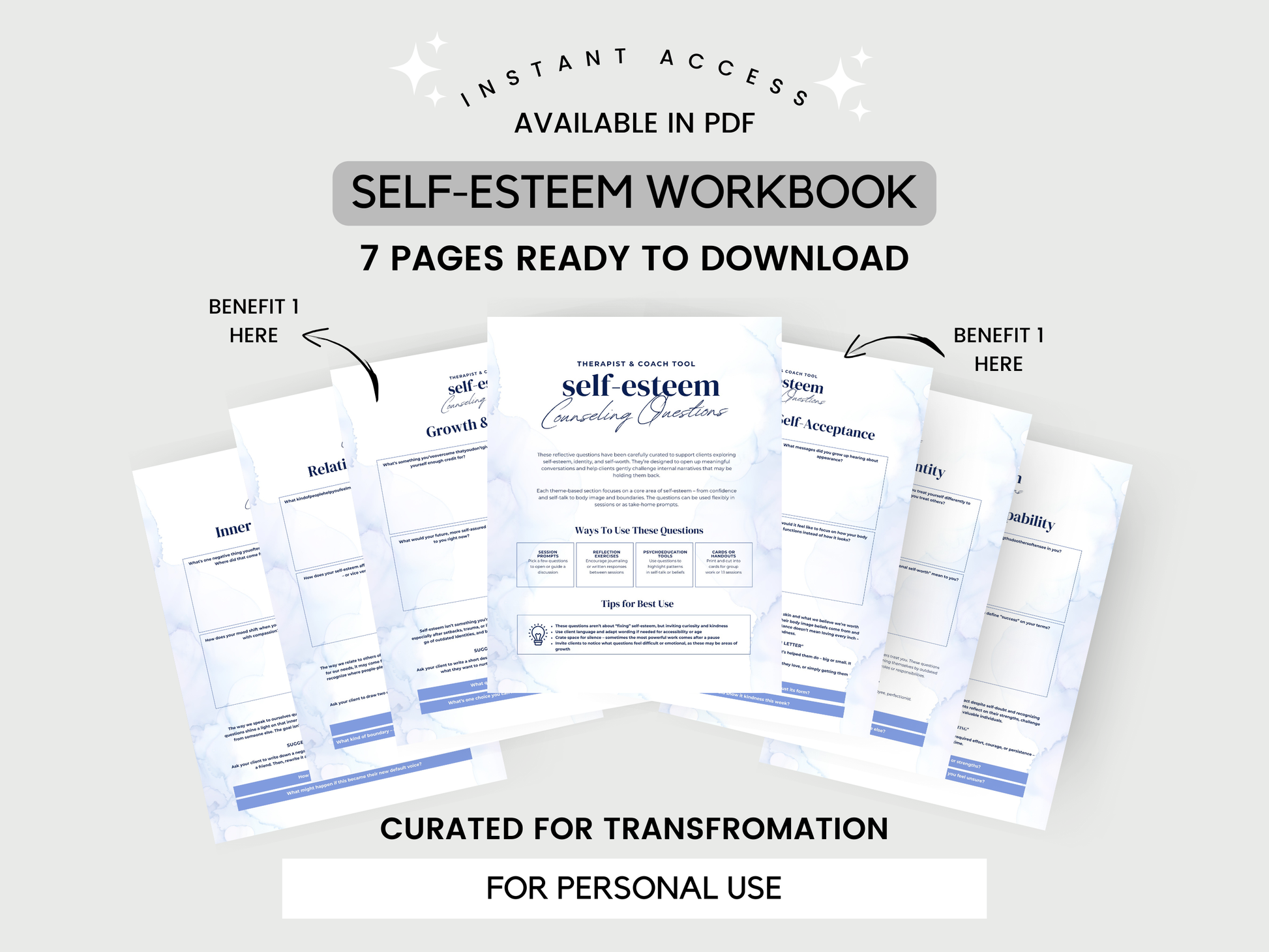 With an instant-download format, you can start exploring these Self-Esteem Counselling Questions right away—unlock deeper self-understanding, nurture a resilient self-image, and lay the groundwork for lasting personal growth.