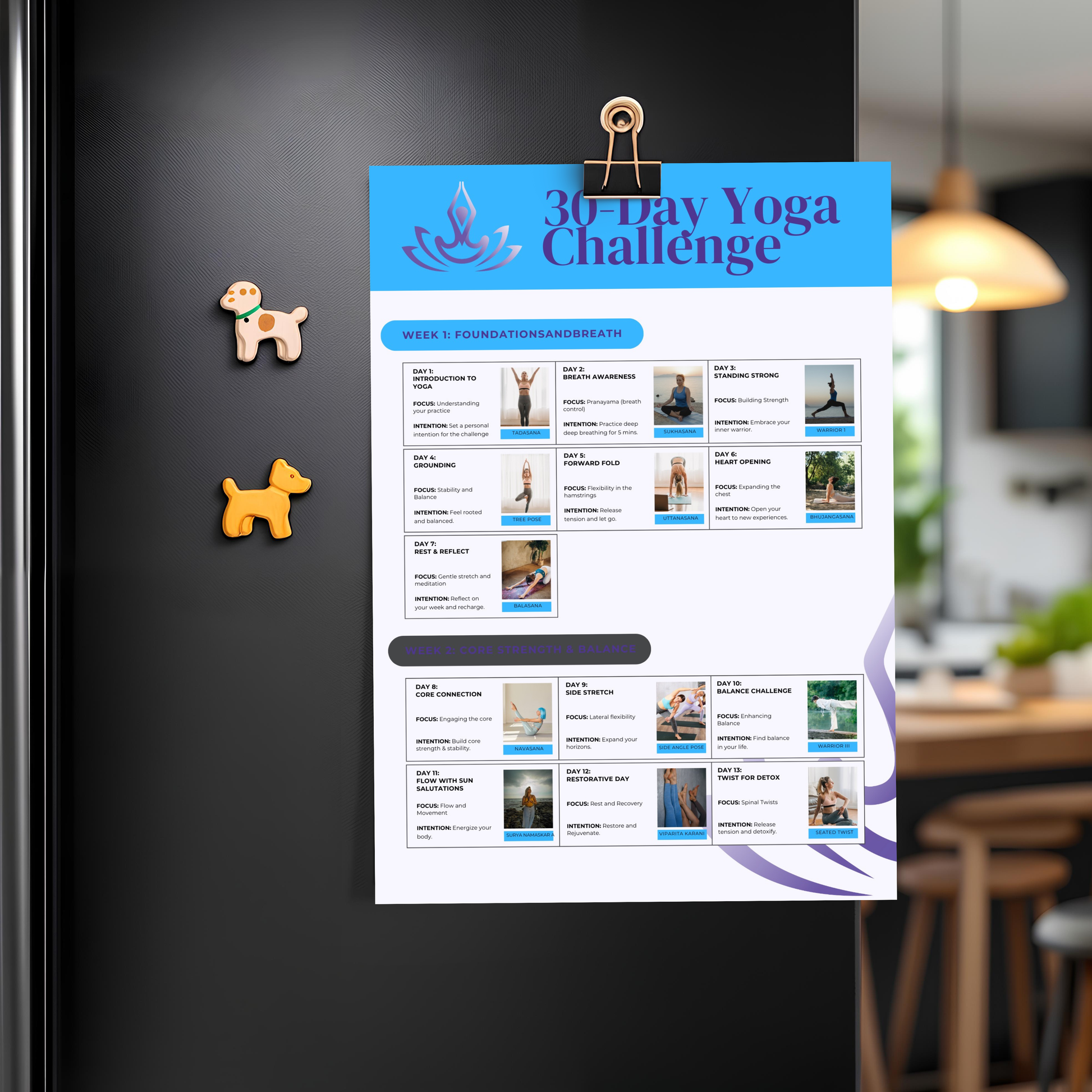 Perfect for at-home practice, the 30 Day Yoga Challenge offers structure, clarity, and motivation to keep you moving forward. Get ready to feel stronger, more flexible, and more centered—one day at a time.