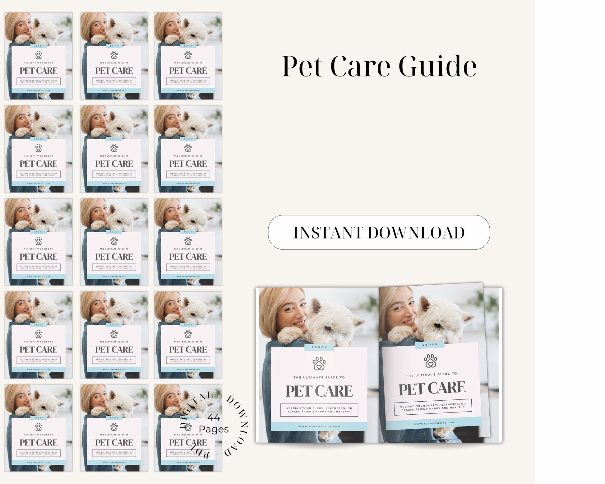 Say hello to the Pet Care Guide, your trusted ebook for practical, compassionate pet parenting. Delivered as an instant download, this comprehensive resource puts expert guidance right at your fingertips—so you can start making informed decisions for your new or evolving pet family immediately.