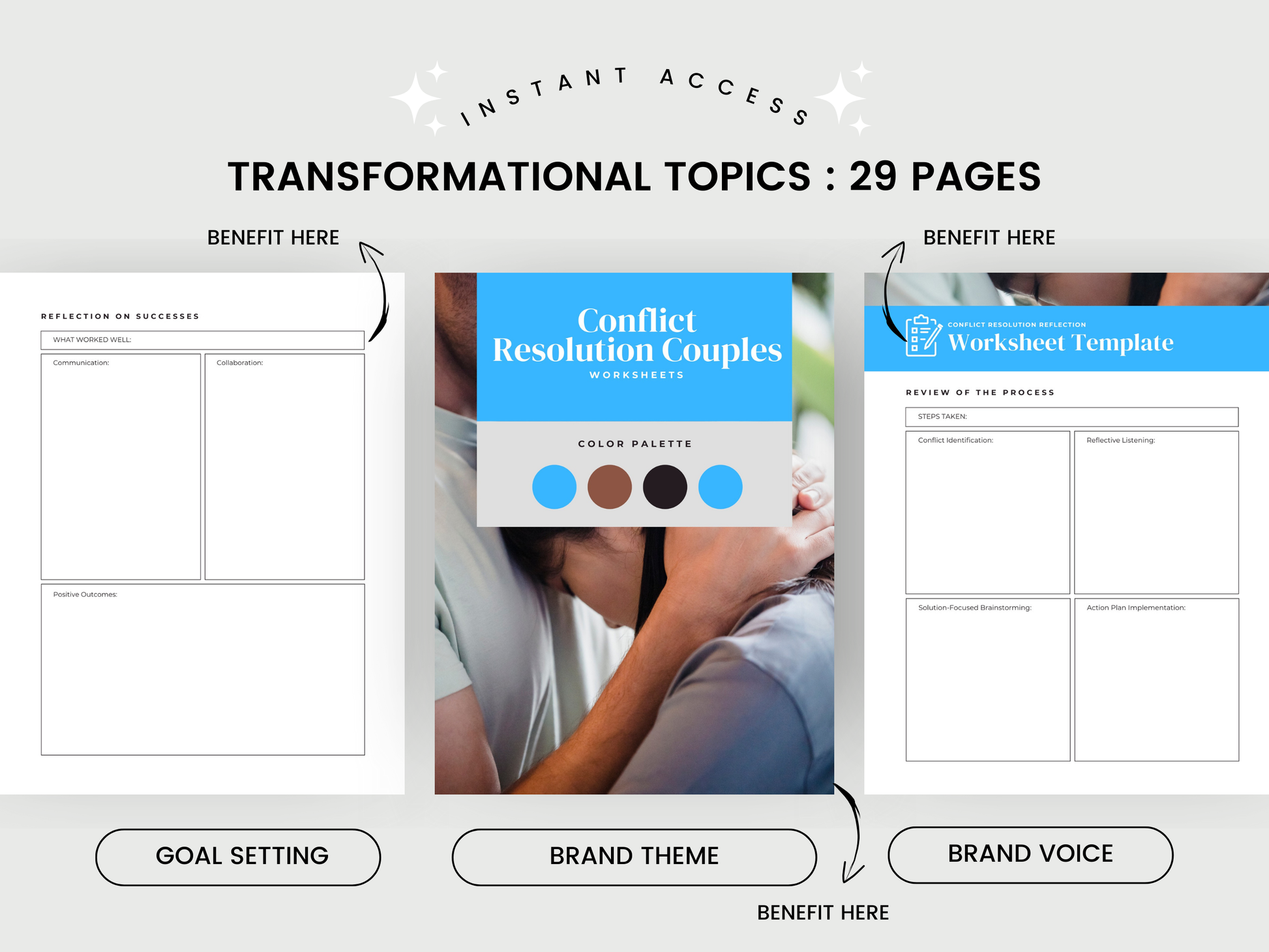 Conflict Resolution Couples Worksheets is a practical, goal‑driven toolkit designed to transform heated exchanges into constructive conversations. This instant download bundle guides you through every stage of healthy conflict management—from spotting triggers to turning insights into lasting actions.