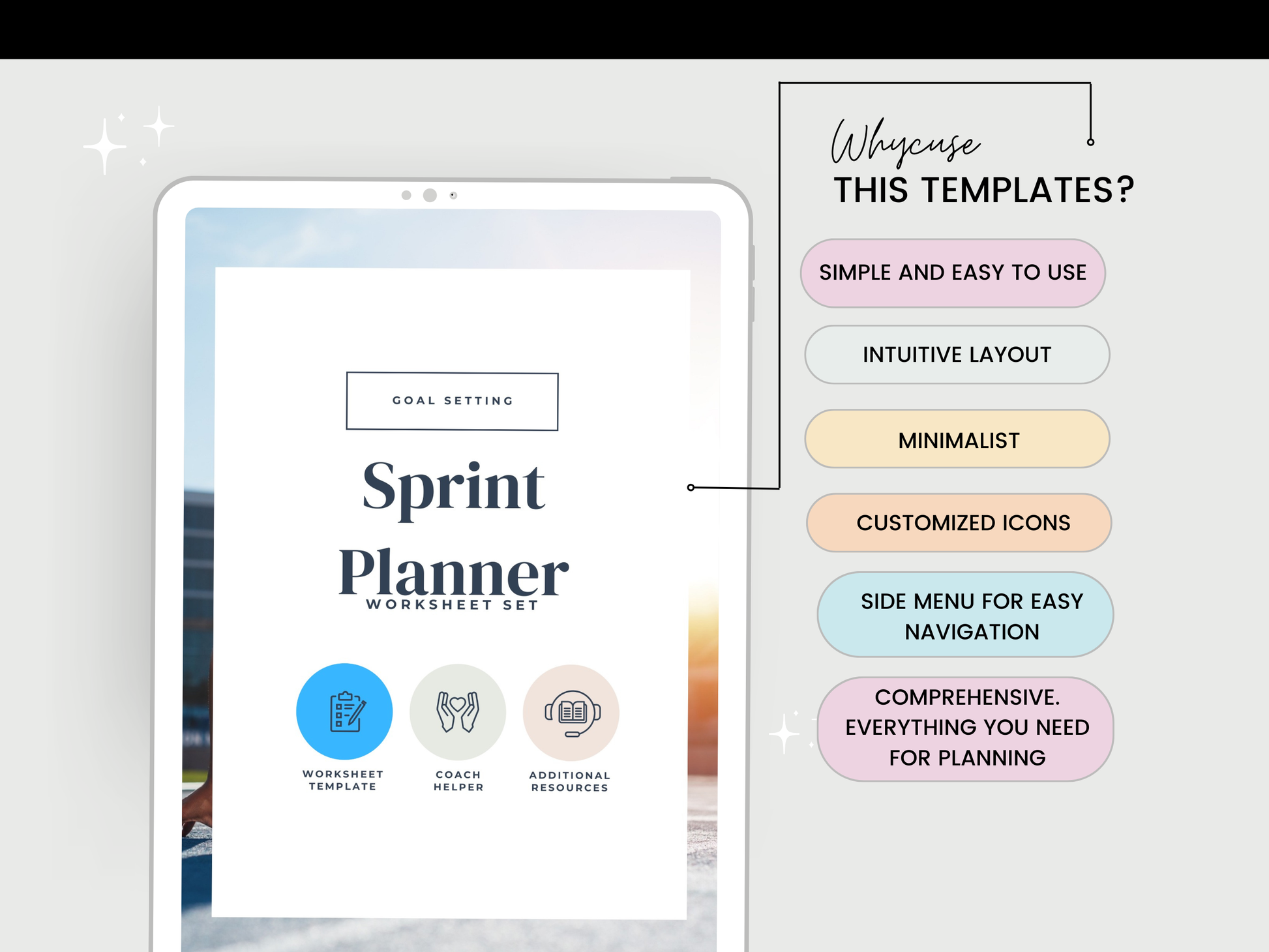 - Sprint Planner Worksheets template to structure sprints with dedicated spaces for tasks, priorities, and deadlines.