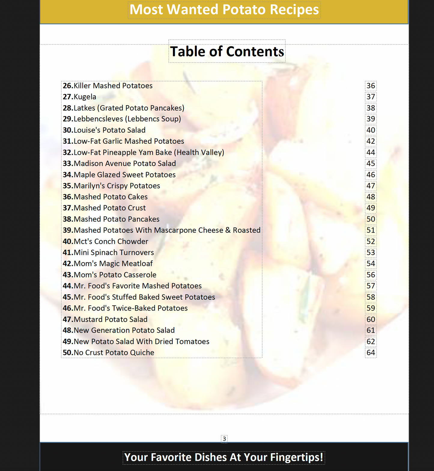 With the Most Wanted Potato Recipes, you'll never run out of ideas for your next potato dish. Impress your family and friends with new and exciting recipes that will leave them wanting more. Don't miss out on this one-of-a-kind product, get your hands on it now!