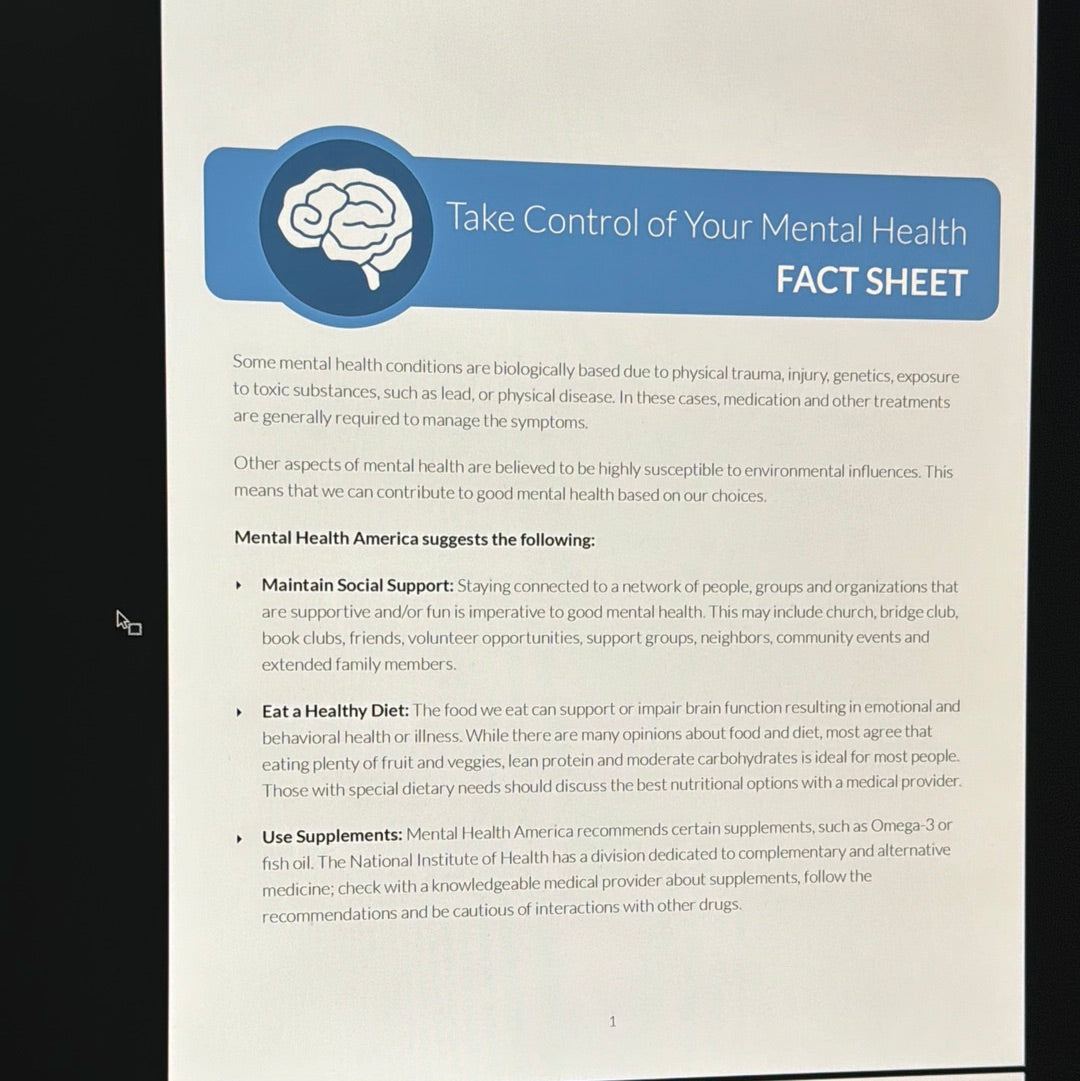 Take Control of Your mental Health Fact Sheet